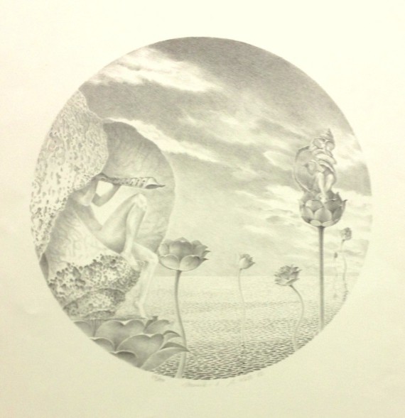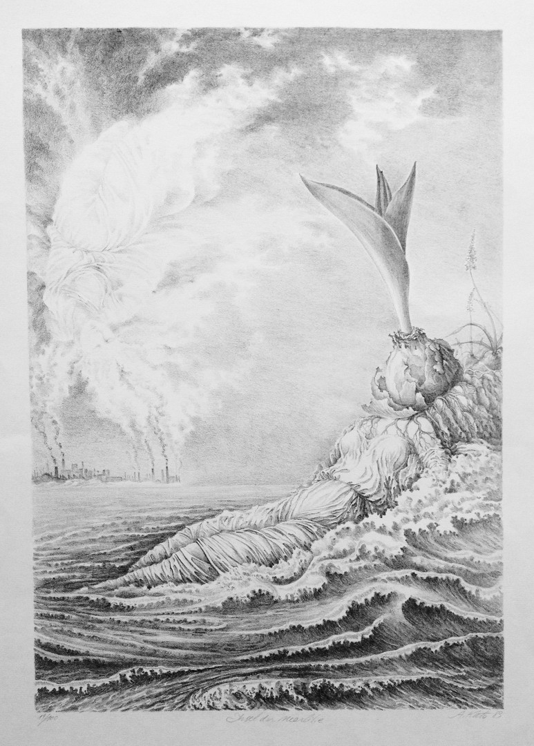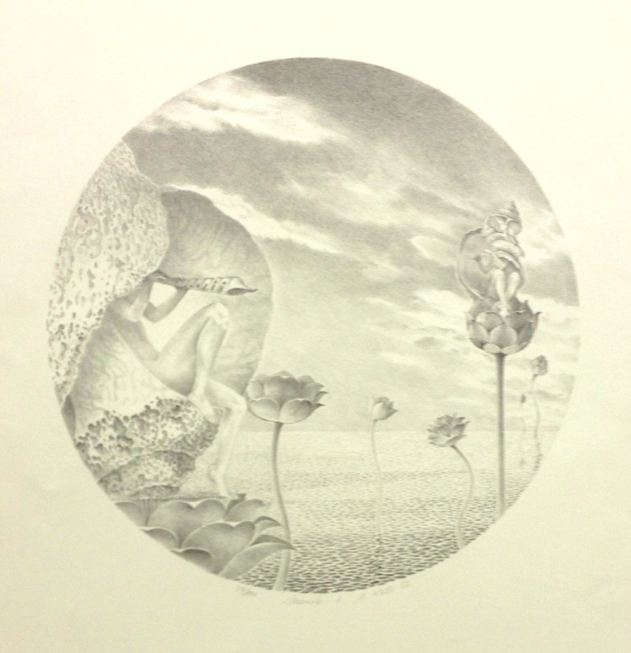 Atsuko Kato (b. 1950): INSEL DER MEERLILIE, 1983, Stone litho, Image 43 x 30 cm,