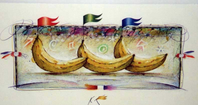 A present from Peter Korinek to J. & R. Hammond on the occasion of his solo show at their Galerie am Theater in 1988.