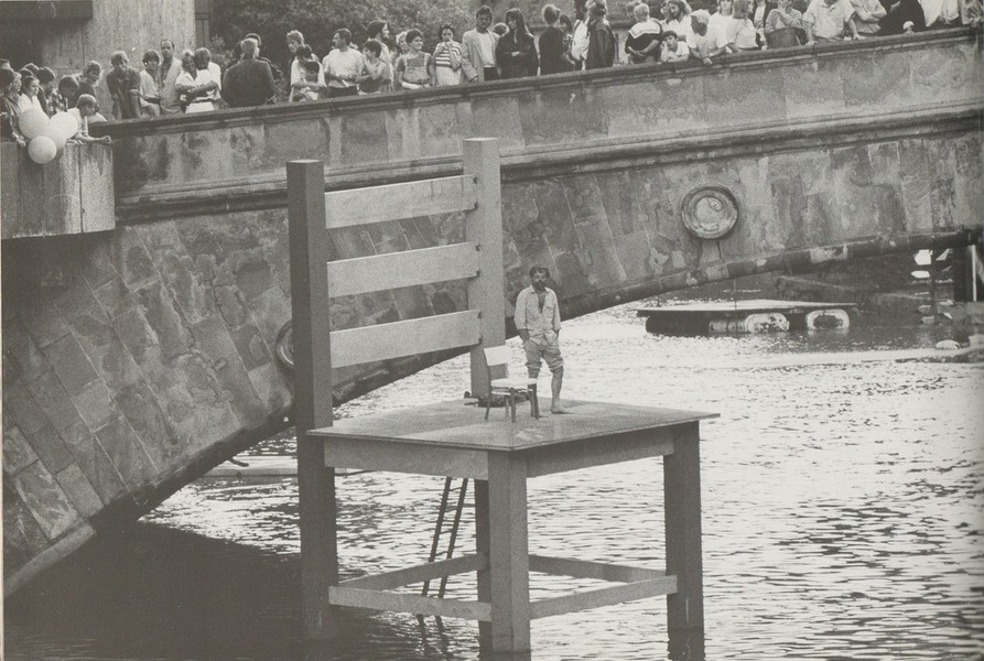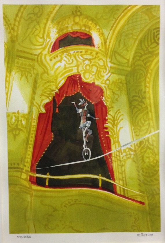 This artwork was a gift from Peter Thiele to John and Renate Hammond on the occasion of his joint exhibition Die alltägliche Aufführung (The Everyday Performance) with Stephan Klenner-Otto at the Stadttheater Fürth in Fürth, Bavaria in 2014.